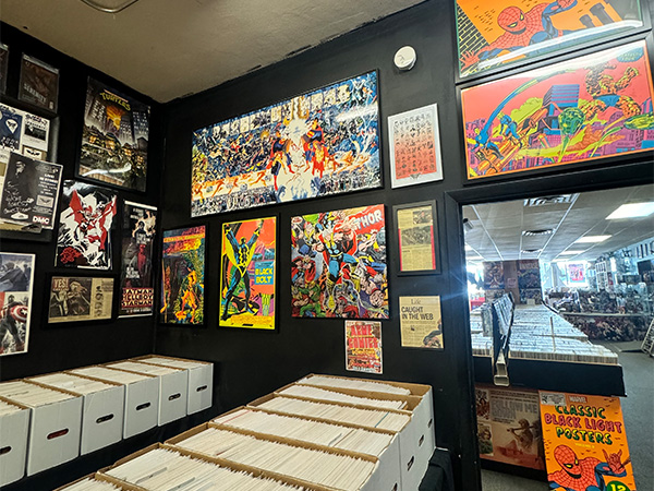As a full service comic book store, we offer weekly new releases of comic books from major and small press publishers, a selection of over one hundred thousand back issues dating back to the 1980s, and a variety of vintage comic books from the 1940s through the 1970s.
