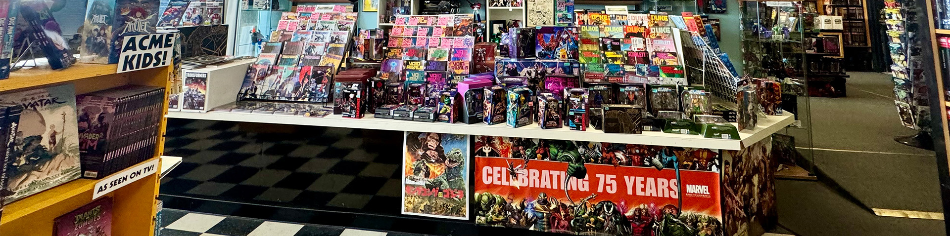 Acme Comics is a destination for comic book fans from all over the country and abroad! We are happy to say that comic book fans from England, Germany, South America, Japan, and countless other locations around the world have made it a point to visit us every time they are in the area.